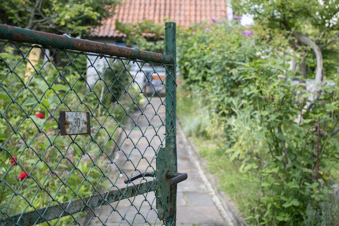 Bei der Nummer 30 öffnet sich quietschend ein niedriges grünes Eisentor. Ein mit Steinplatten ausgelegter Weg führt zu einem kleinen Häuschen mit hellblauen Fensterläden. Das Grundstück ist eins von über einer Million Kleingärten, die es in Deutschland laut einer Schätzung des Bundesinstituts für Bau-, Stadt- und Raumforschung gibt.