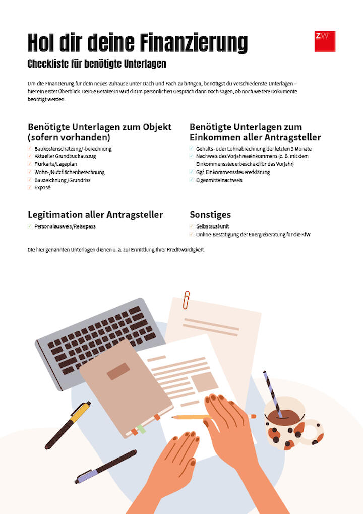 Bist du bereit für deine eigene Immobilienfinanzierung? Dann hole dir jetzt verschiedene Angebote ein. Damit auf der letzten Etappe auch nichts schiefläuft, haben wir dir hier eine Checkliste mit allen benötigten Unterlagen zusammengestellt. Hol dir deine Finanzierung!