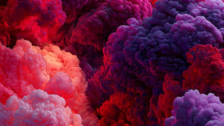 Thermal Glow ist ein Trend für Mutige: Intensive Verläufe aus leuchtendem Rot, elektrischem Lila und Pink. Inspiriert von thermischer Bildgebung, steht dieser Trend für Innovation, Technologie und unsichtbare Energie. Er wirkt futuristisch und fast surreal.